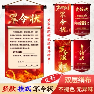 新款 卷轴定制定做 挂旗军令状旗子旗帜圣旨挑战书责任状任务书竖版由