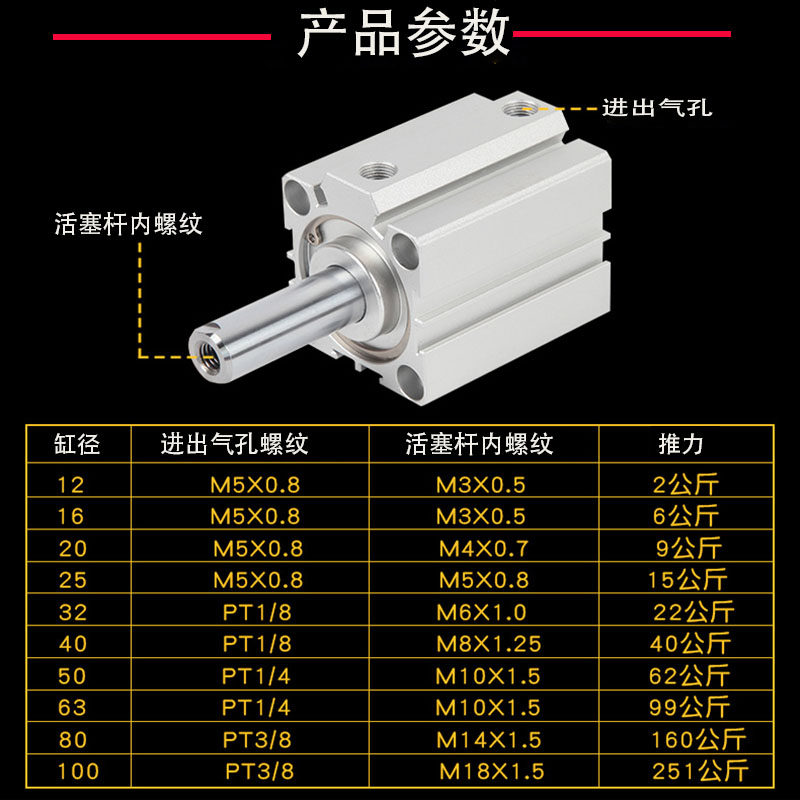 sc气缸小型气动气缸大推力可调行程气缸大全SCJ40X50X63X80X100