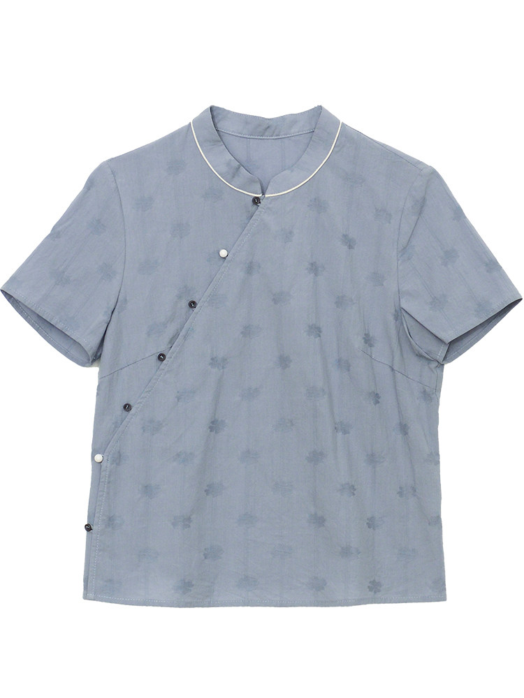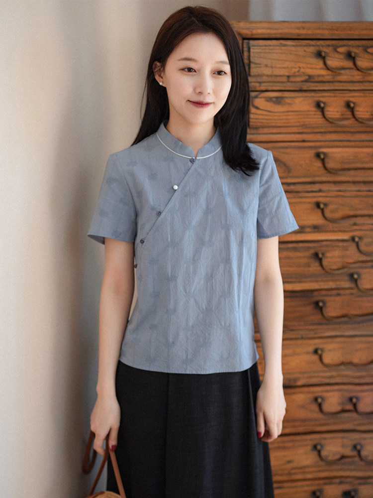 前世今生复古文艺轻中式 21CXA 247 风清花静 立领斜襟衬衫