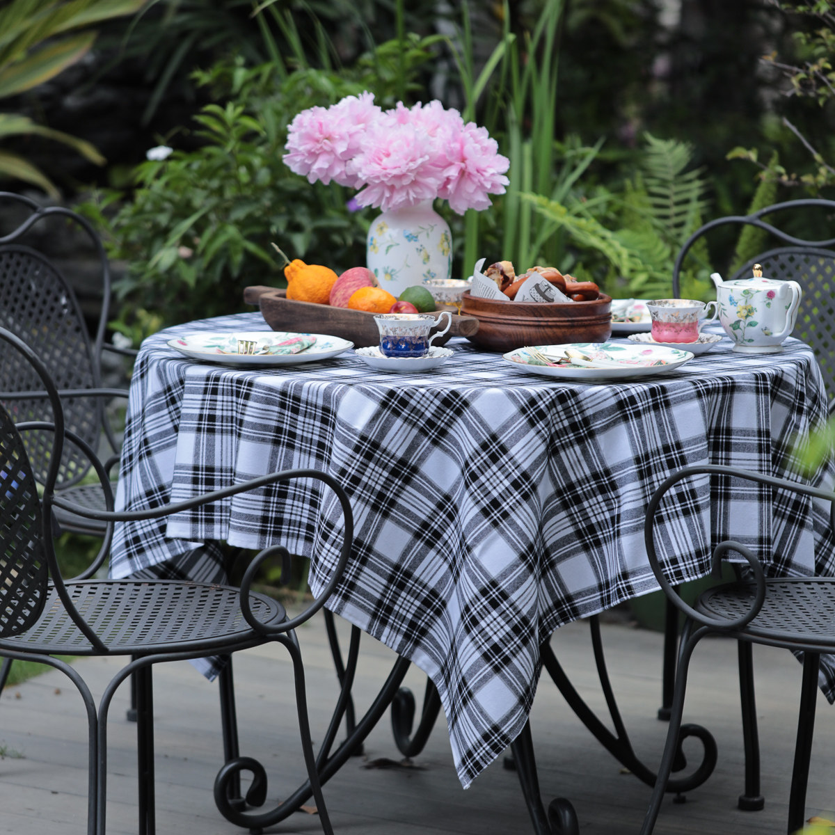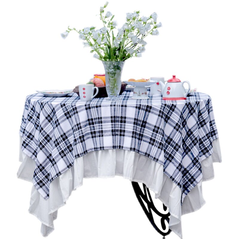 黑白格子法式 PEONY可爱荷叶边正方圆桌垫 桌布咖啡厅防水棉麻MISS