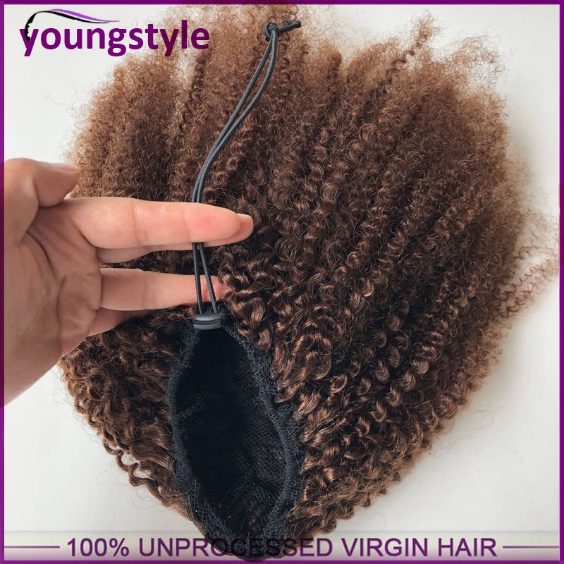 Kinky Ponytai Afro Hair Drawstring Human Brown Curly由