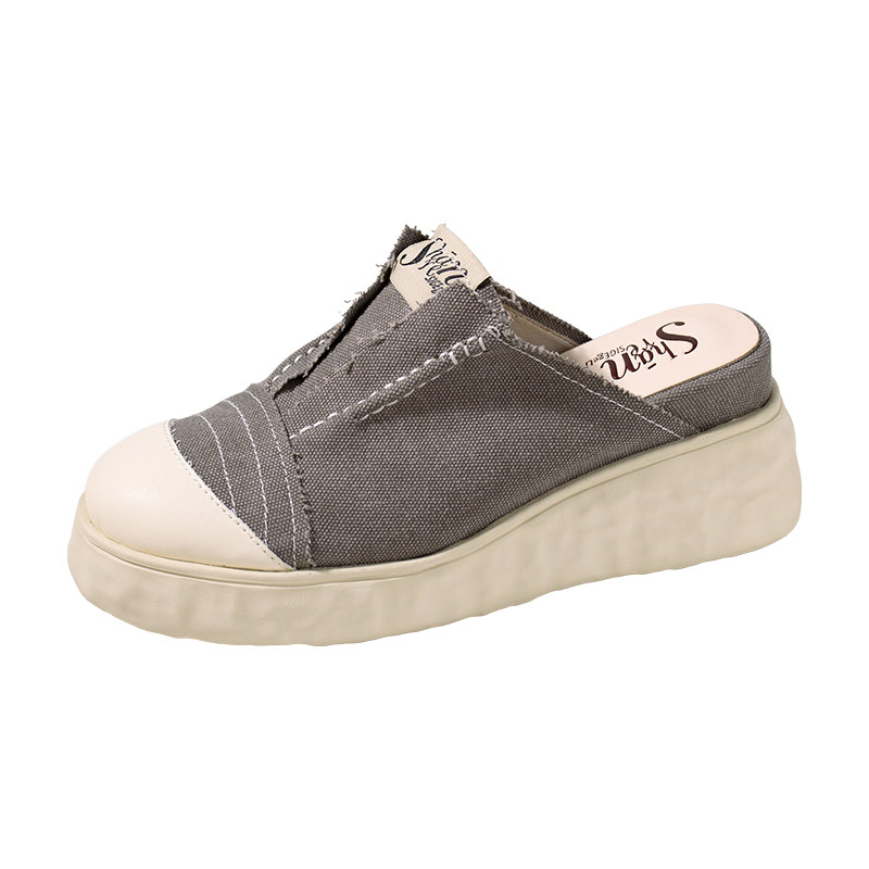 ShānRen原创 女夏外穿厚底帆布半拖 百搭休闲一脚蹬懒人包头拖鞋