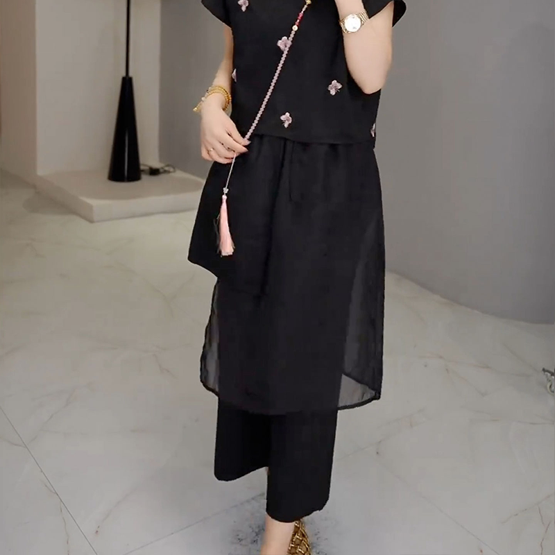 为您提供商品黑色网纱拼接屁帘休闲裤 大码 显瘦小个子通勤直筒山本裤 裙 女夏薄款的详细介绍,