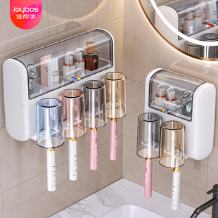 免打孔家庭高颜值刷牙漱口杯子 佳帮手牙刷牙膏置物架卫生间壁挂式