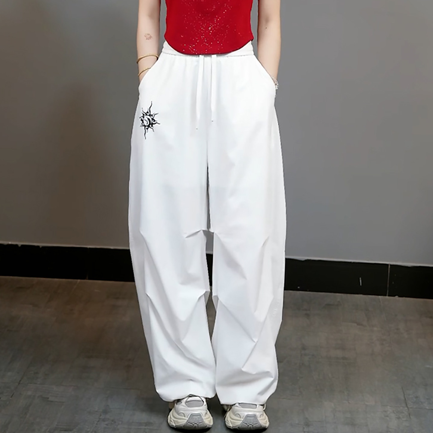 Ader白色伞兵工装 女2026春夏薄款 松紧腰抽绳宽松阔腿运动休闲裤 裤