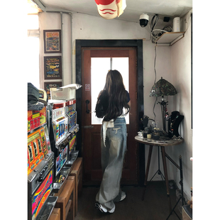 eihey诶嘿低腰修身 长裤 阔腿裤 女 直筒休闲宽松做旧磨白水洗牛仔裤