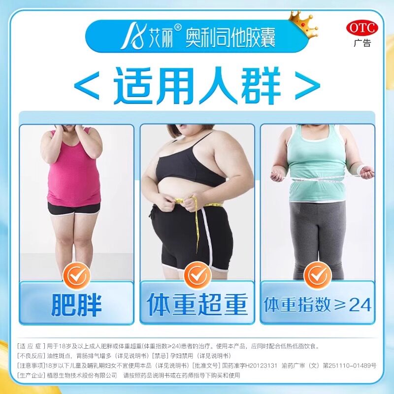 艾丽 用于成人肥胖或体重超重 奥利司他胶囊0.12g由