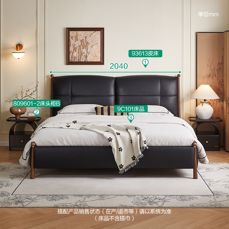 慕思皮床主卧婚床真皮床现代简约实木床架轻奢网红皮艺床双人慕斯