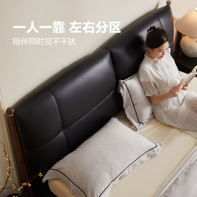 真皮床主卧2米x2米2大床现代简约1.8米软包皮艺实木储物婚床 意式