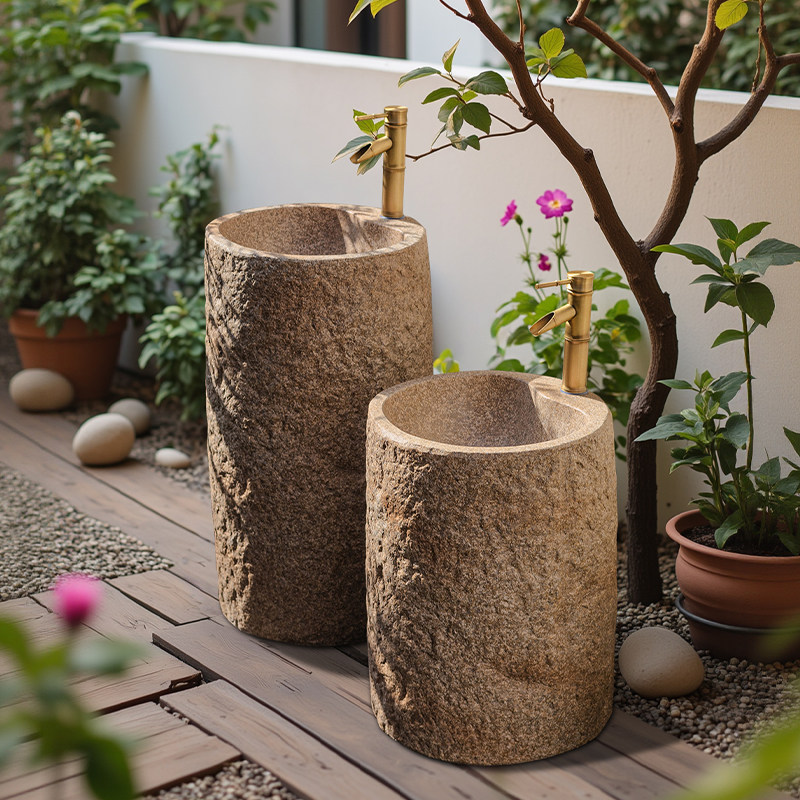 掬涵户外花园仿石洗手盆立柱一体式 饰摆件 洗手池落地洗脸盆庭院装由