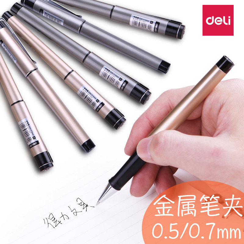 S96高档黑色子弹头0.5水笔0.7办公签字笔 得力重感商务中性笔S95