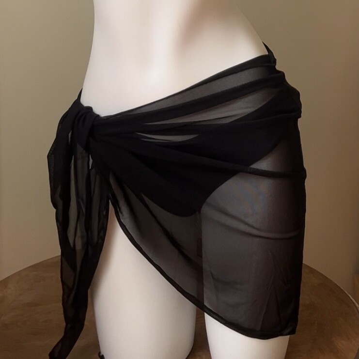 三角纱遮肚显瘦沙滩比基尼外穿披纱黑白纯色泳衣裹裙防走光纱笼女