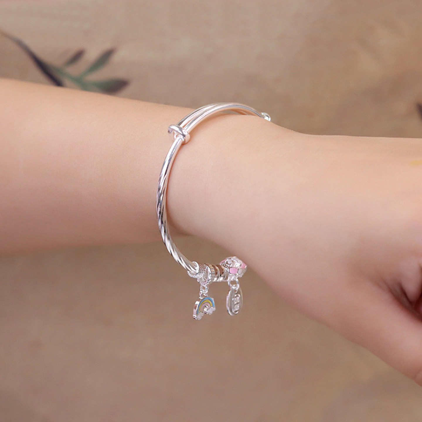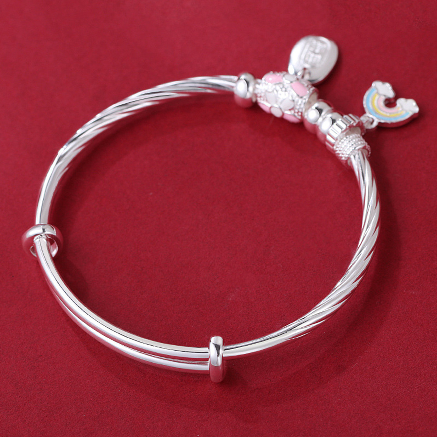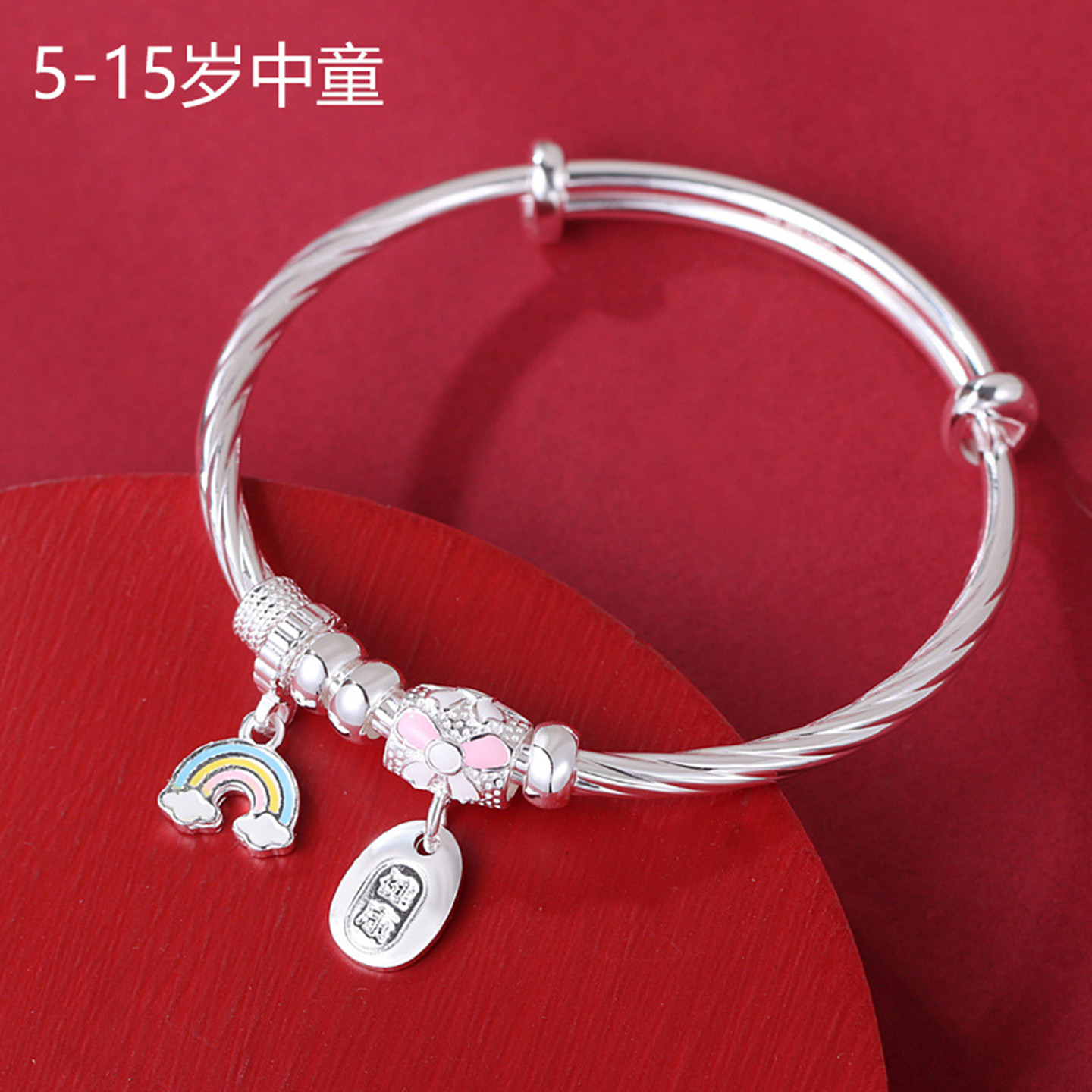 为您提供商品5到15岁999纯银卡通彩虹中大童手镯光面实心手环儿童推拉足银镯子的详细介绍,