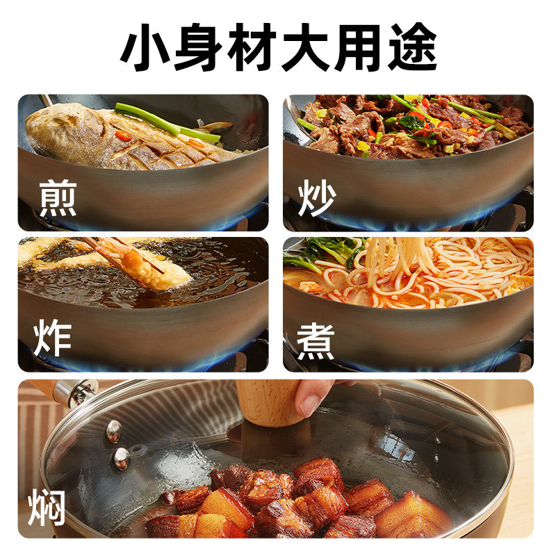 康巴赫Pro版 真钛0涂层炒锅无涂层家用不粘锅不锈钢炒菜锅 新品