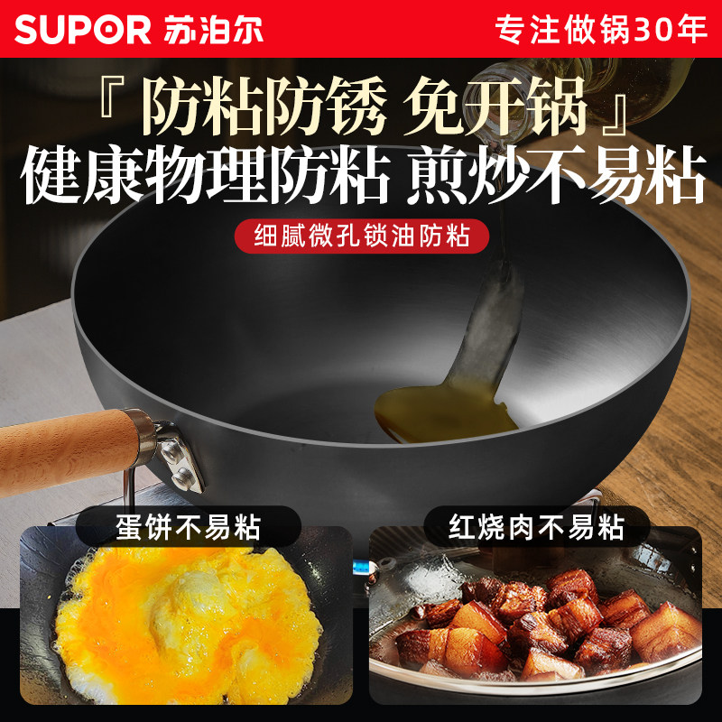 苏泊尔有钛铁锅铁不粘无涂层钛锅家用炒锅不粘锅炒菜锅铸铁锅 新品