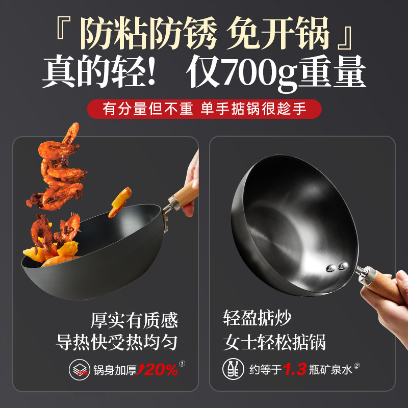 九阳铁锅无涂层炒锅家用炒菜锅不易粘锅电磁炉专用燃气灶旗舰店炊