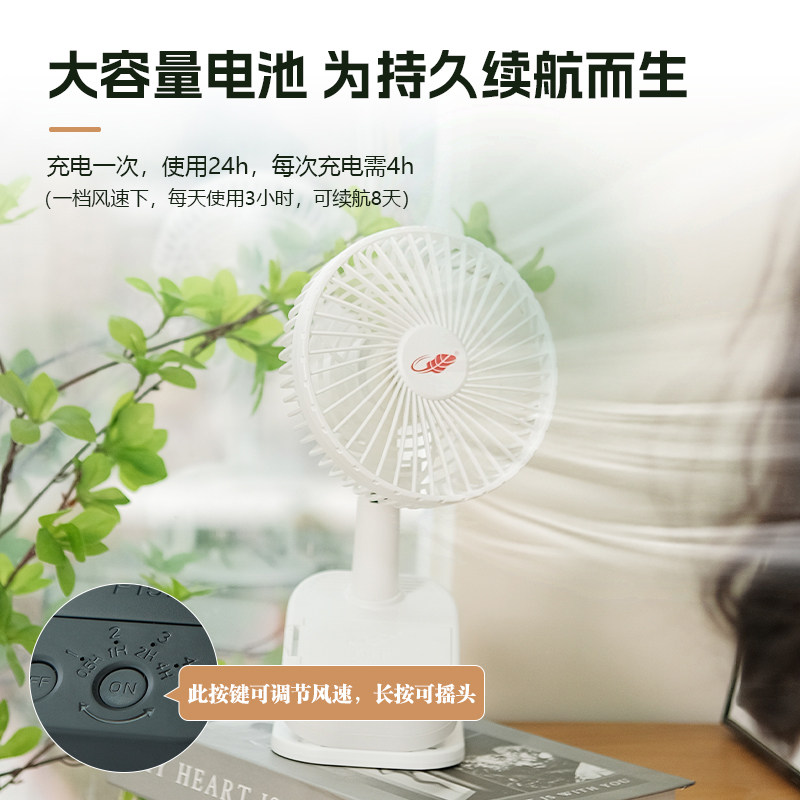 共田F15B充电式 自动摇头定时小风扇 桌面台夹挂式
