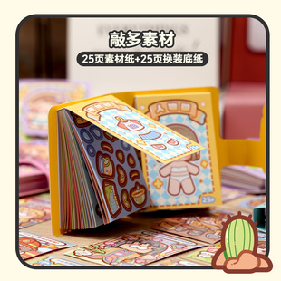 小麻薯贴纸书女孩儿童豆豆本换装 贴纸画 书diy玩具免裁剪迷你换装由