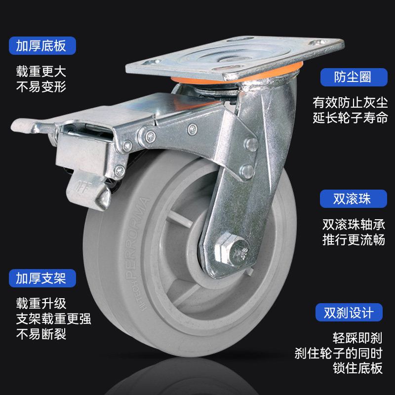 重型万向轮轮静音脚轮转向轮滑轮定向承重轮带刹车小轮子移动滚轮