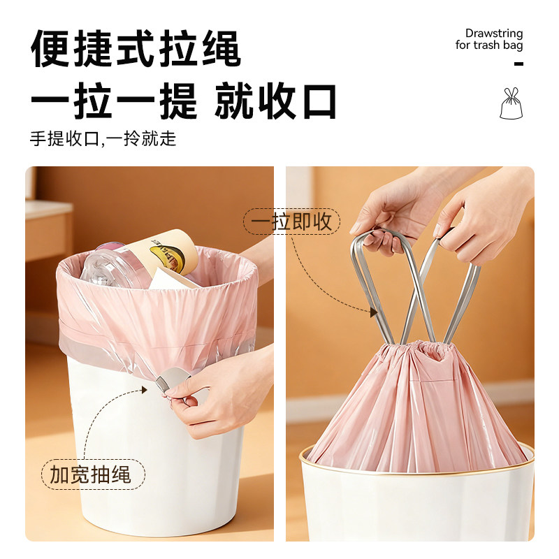 加厚家用抽绳耐用袋子厨房塑料袋自动收口大号宿舍 垃圾袋手提式