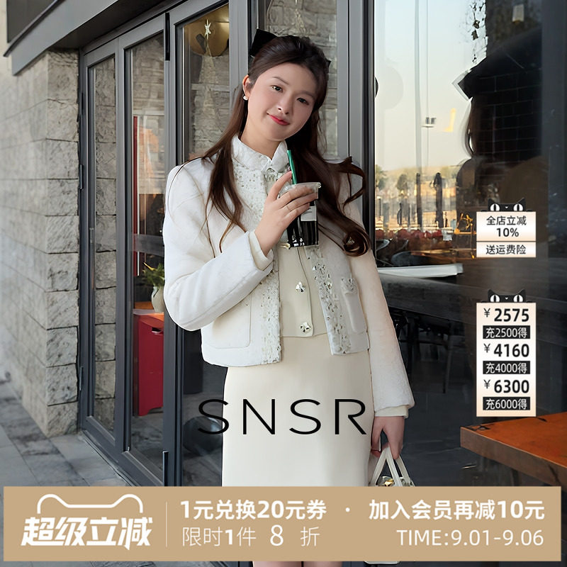 为您提供商品新款 重工亮片气质名媛小香风毛呢加棉短外套 圣妮思2026春季 SNSR的详细介绍,