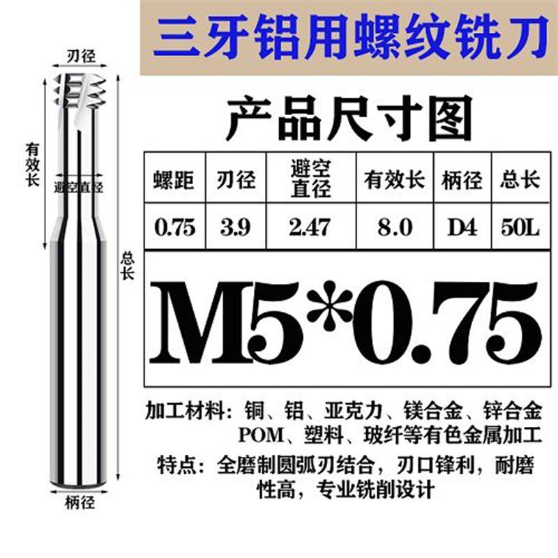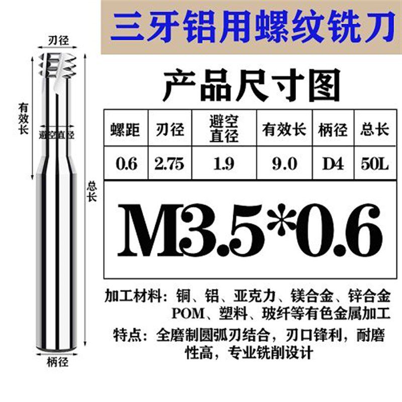 为您提供商品三齿CNC不锈钢铝合金铣牙刀 68度高硬钨钢三牙螺纹铣刀M345681012的详细介绍,