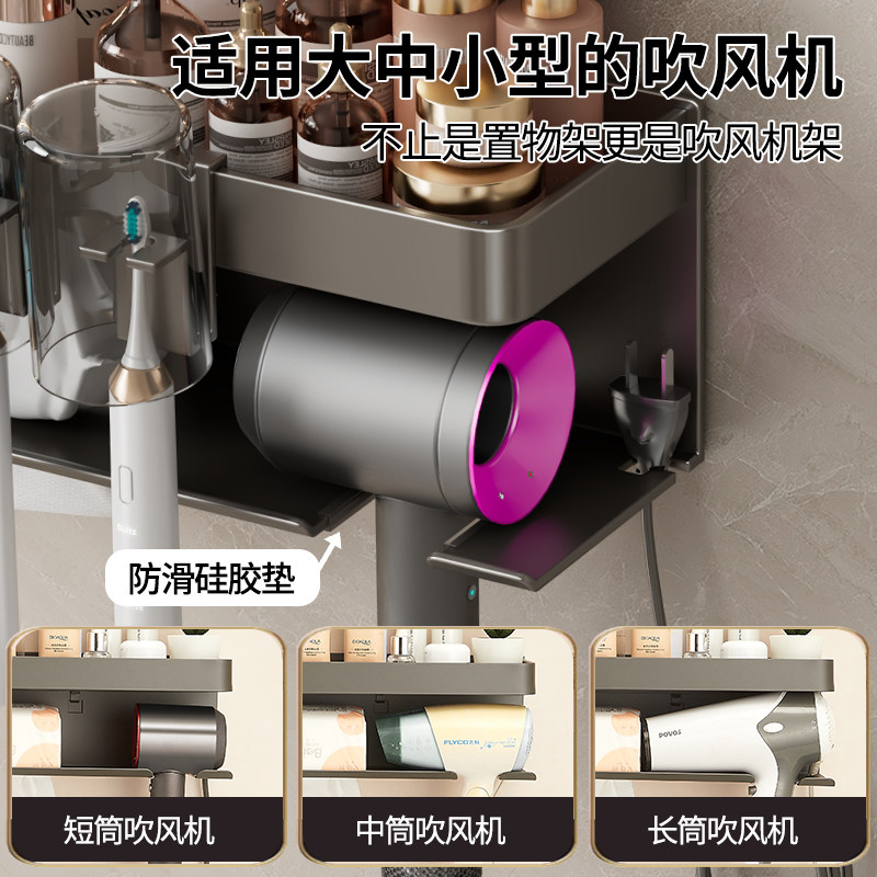 吹风机架洗脸巾收纳架子 吸盘多功能枪灰牙刷置物架卫生间壁挂式由