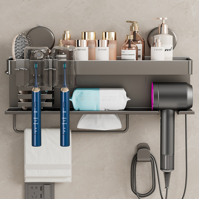 吹风机架洗脸巾收纳架子 吸盘多功能枪灰牙刷置物架卫生间壁挂式