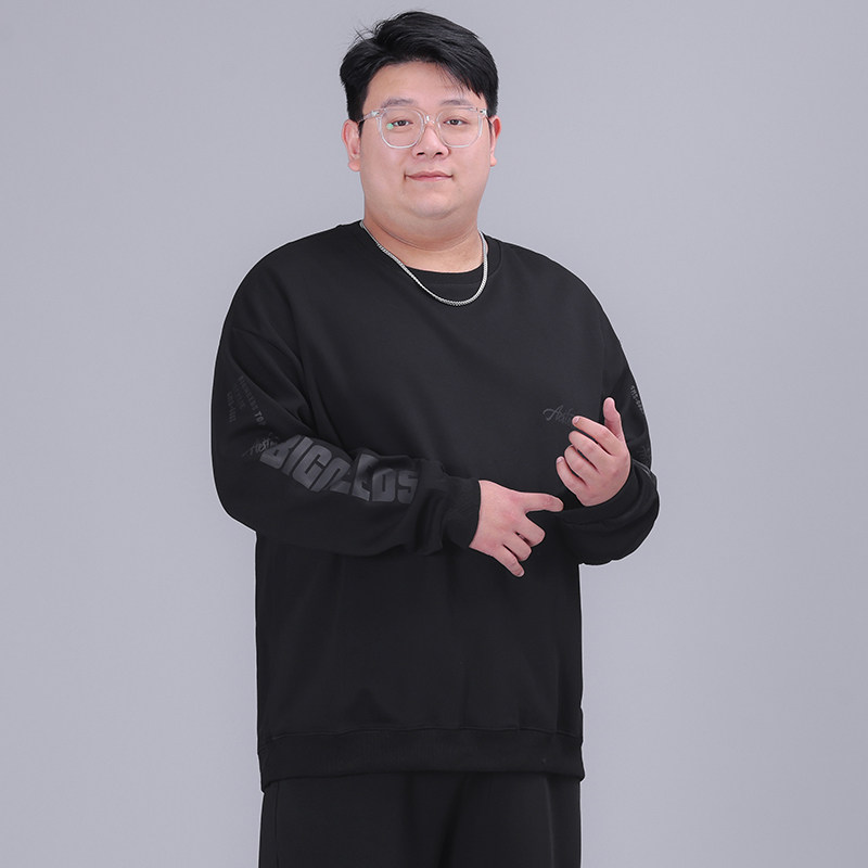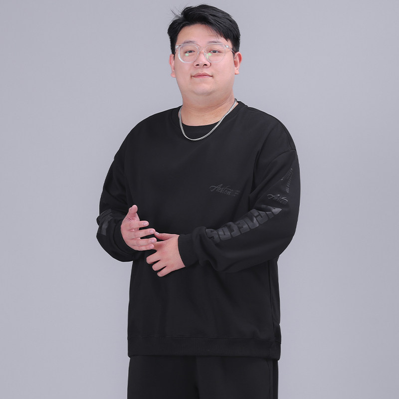 春季 卫衣男大码 男装 休闲加肥加大长袖 复古宽松胖子圆领上衣潮 美式