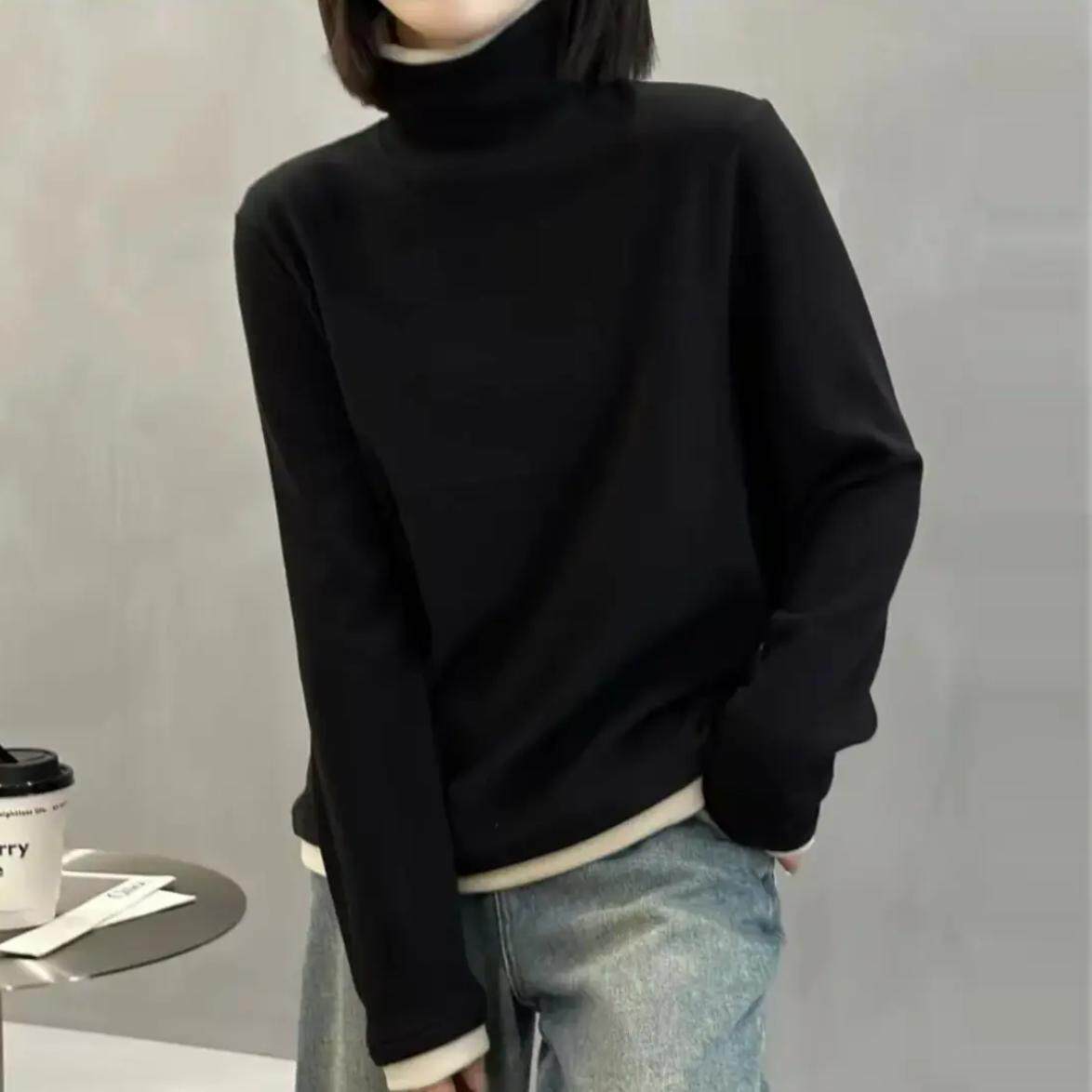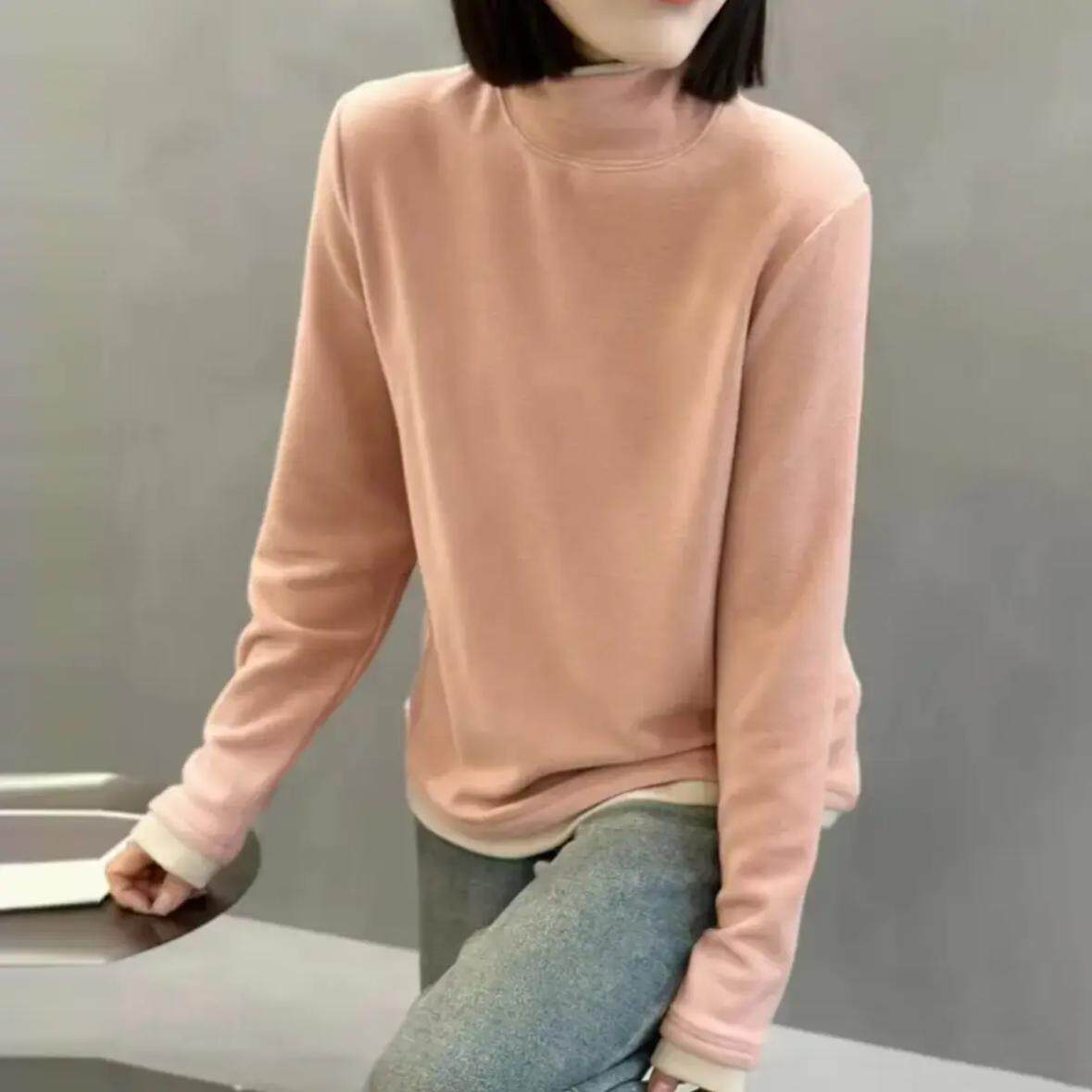 百搭修身 秋冬季 新品 时尚 显瘦加绒加厚纯色打底女士上衣保暖小衫