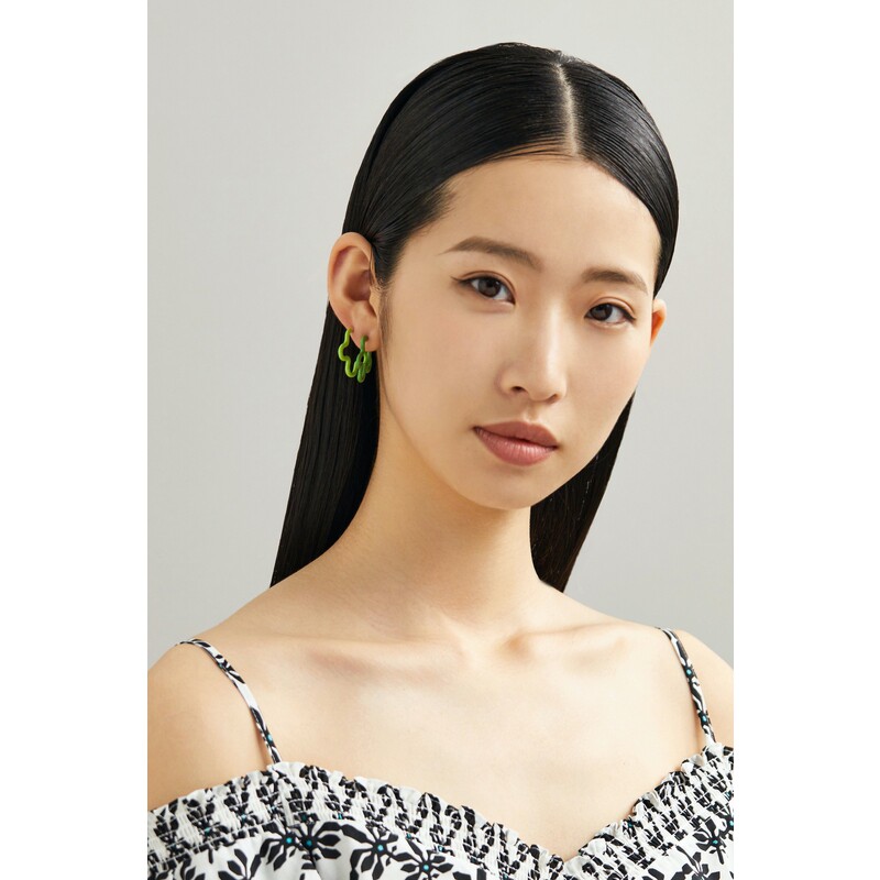 Bea Bongiasca 女9K金绿色珐琅星形耳环 礼物由