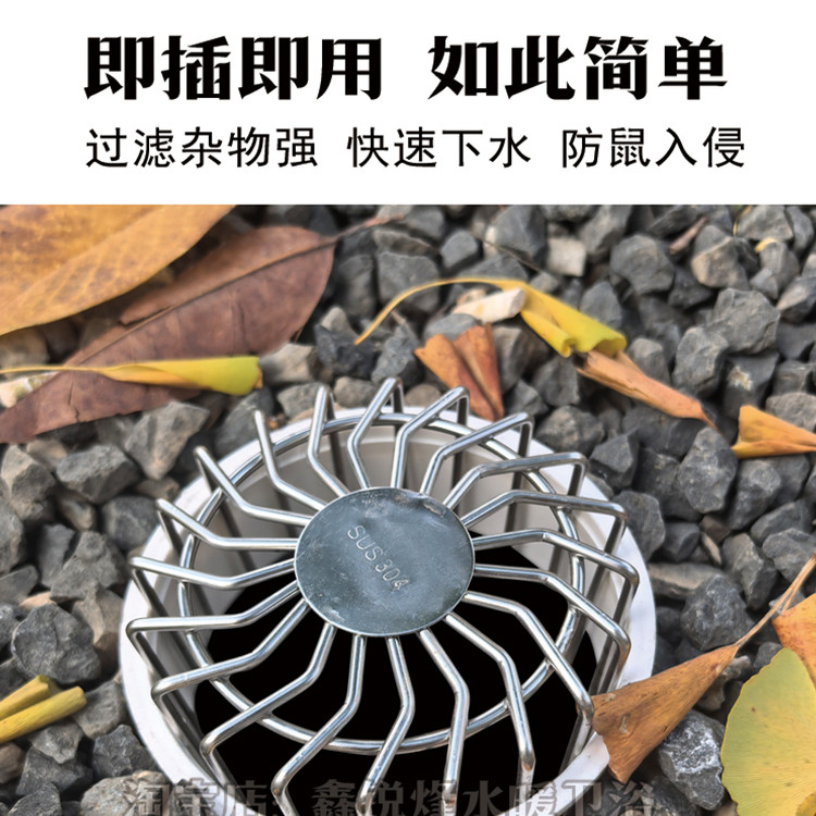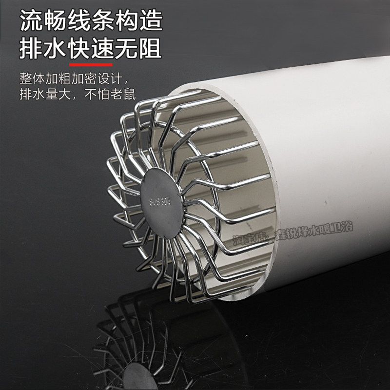 内插110PVC排水沟伸缩侧边地漏304不锈钢圆形防鼠墙洞防鸟网罩50