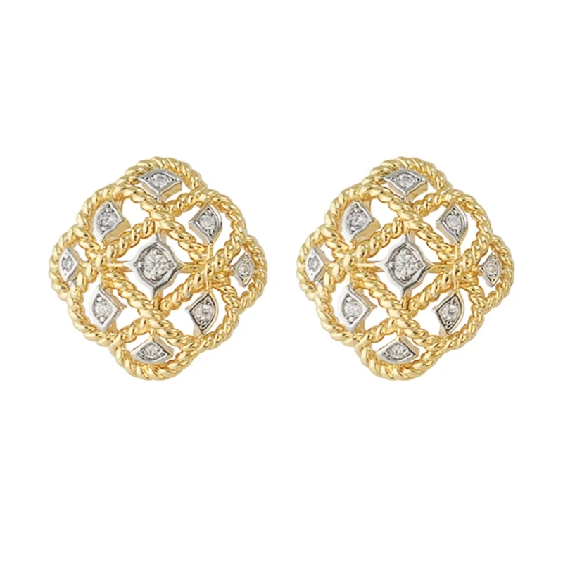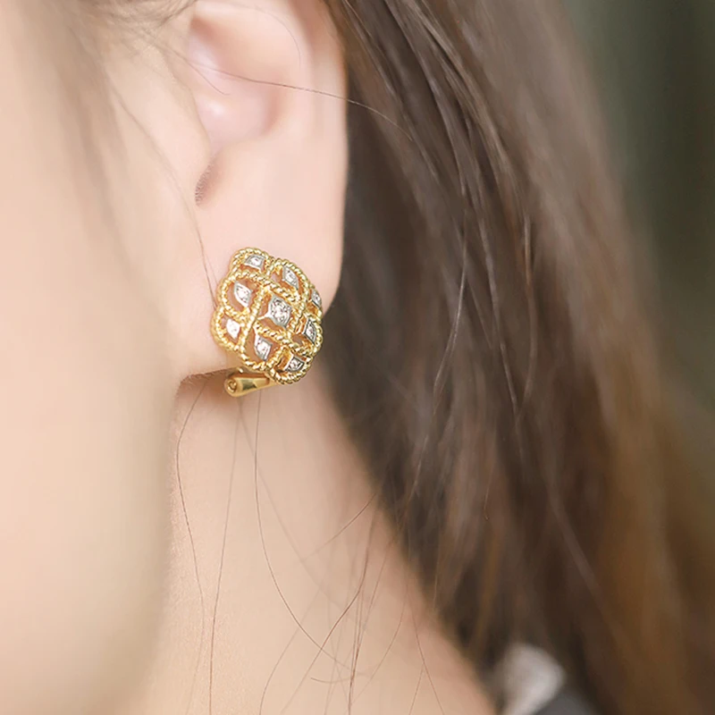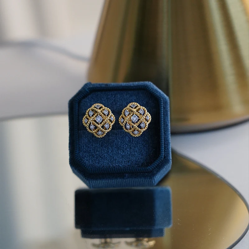 Earrings Women Vintage Stud Rhombic Shaped Tone Hollow Two