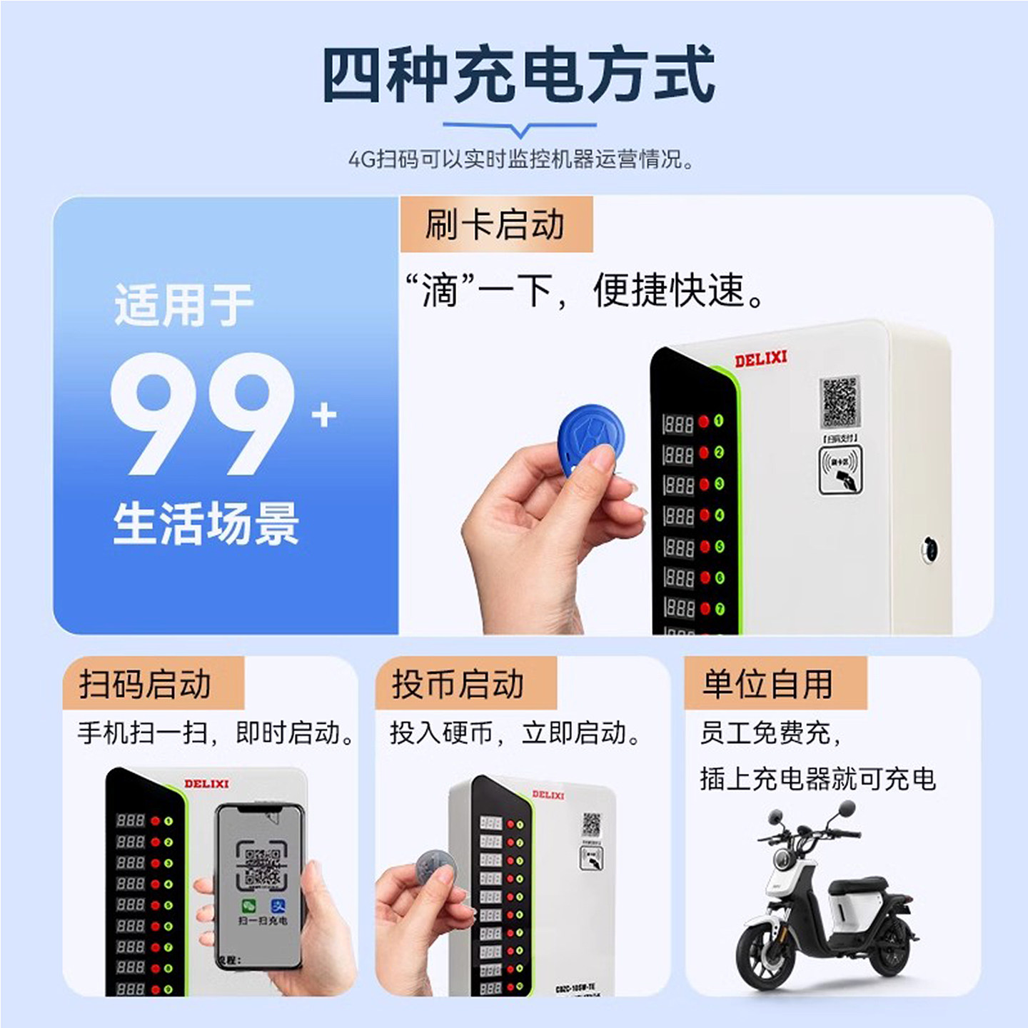 为您提供商品收费自行车智能充电站4G 德力西电瓶车电动车充电桩二轮10路扫码的详细介绍,