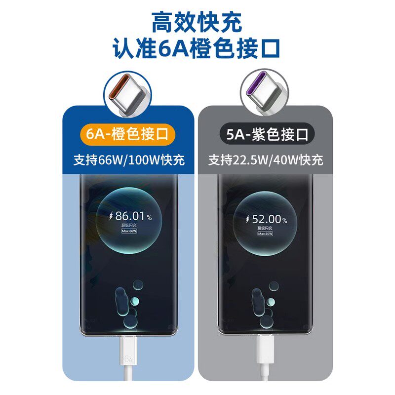 能适Typec数据线6A超级快充原装 适用tpyec充电线华为小米vivo安卓66W充电器线双typc荣耀手机tpc双头车载正品
