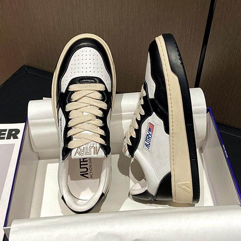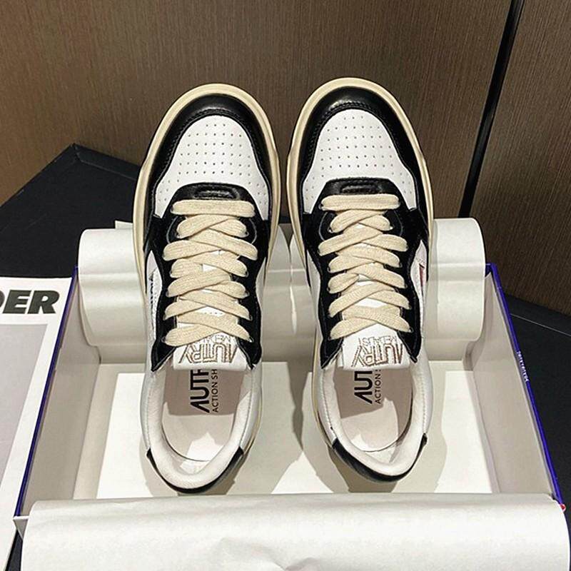 真皮厚底黑白熊猫韩国复古ept运动板鞋 男 女虞书欣同款 autry小白鞋由
