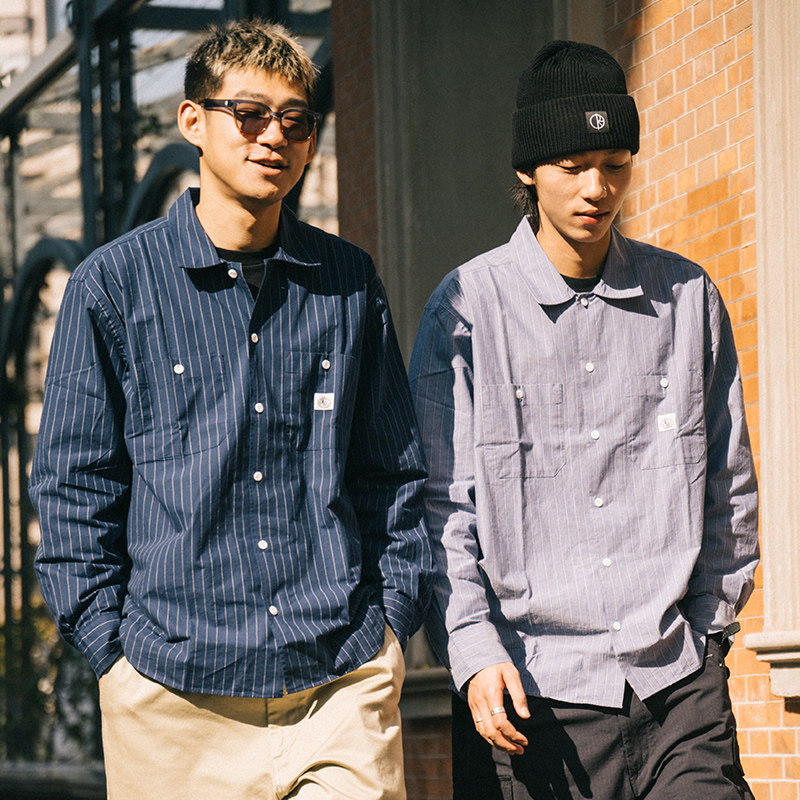 SM001 Resort Shirt 纯棉复古条纹宽松休闲滑板男衬衫 Last由