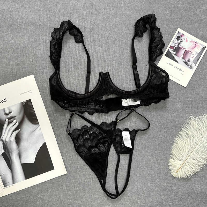 性感情调撩人内衣套装 诱人钢托奶托胸罩镂空三点式 绝美复古风由
