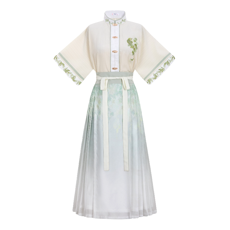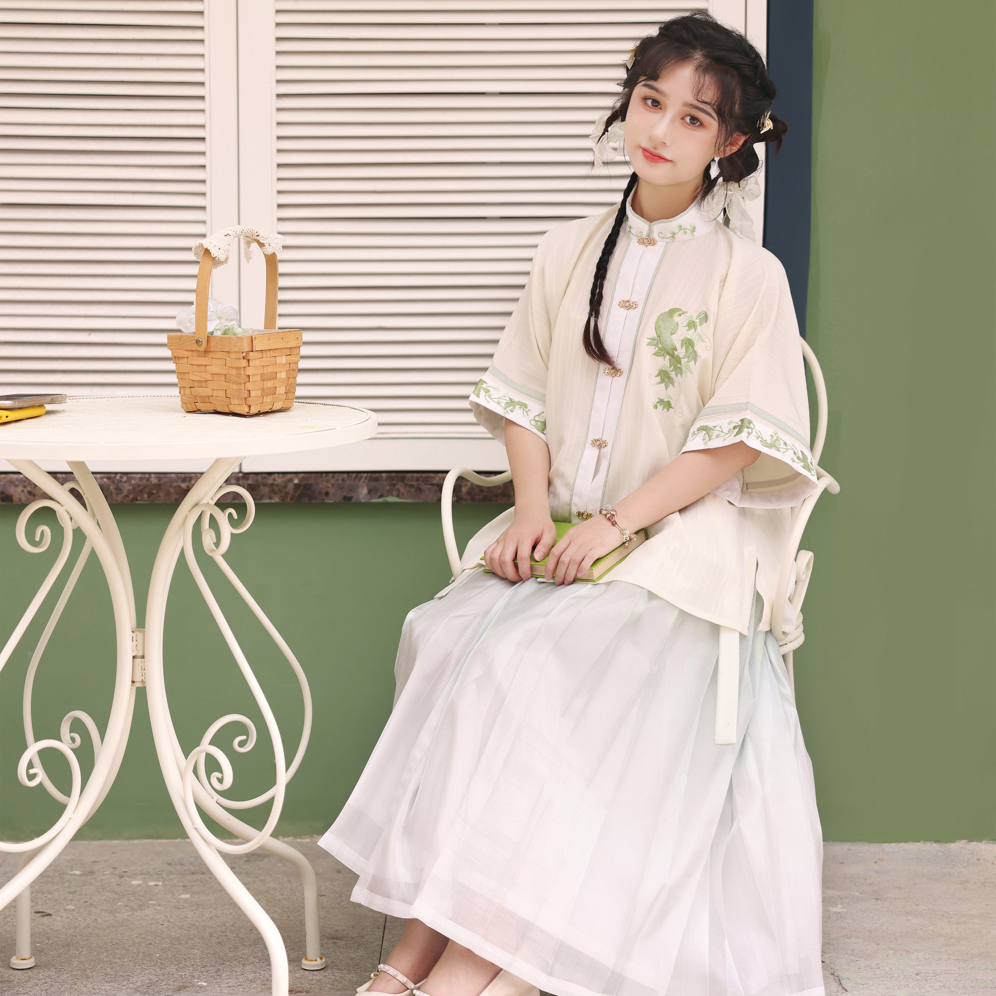 衫 百迭裙刺绣小清新日常 素竖领对襟短袖 花朝记|飞鸟|明制汉服元由