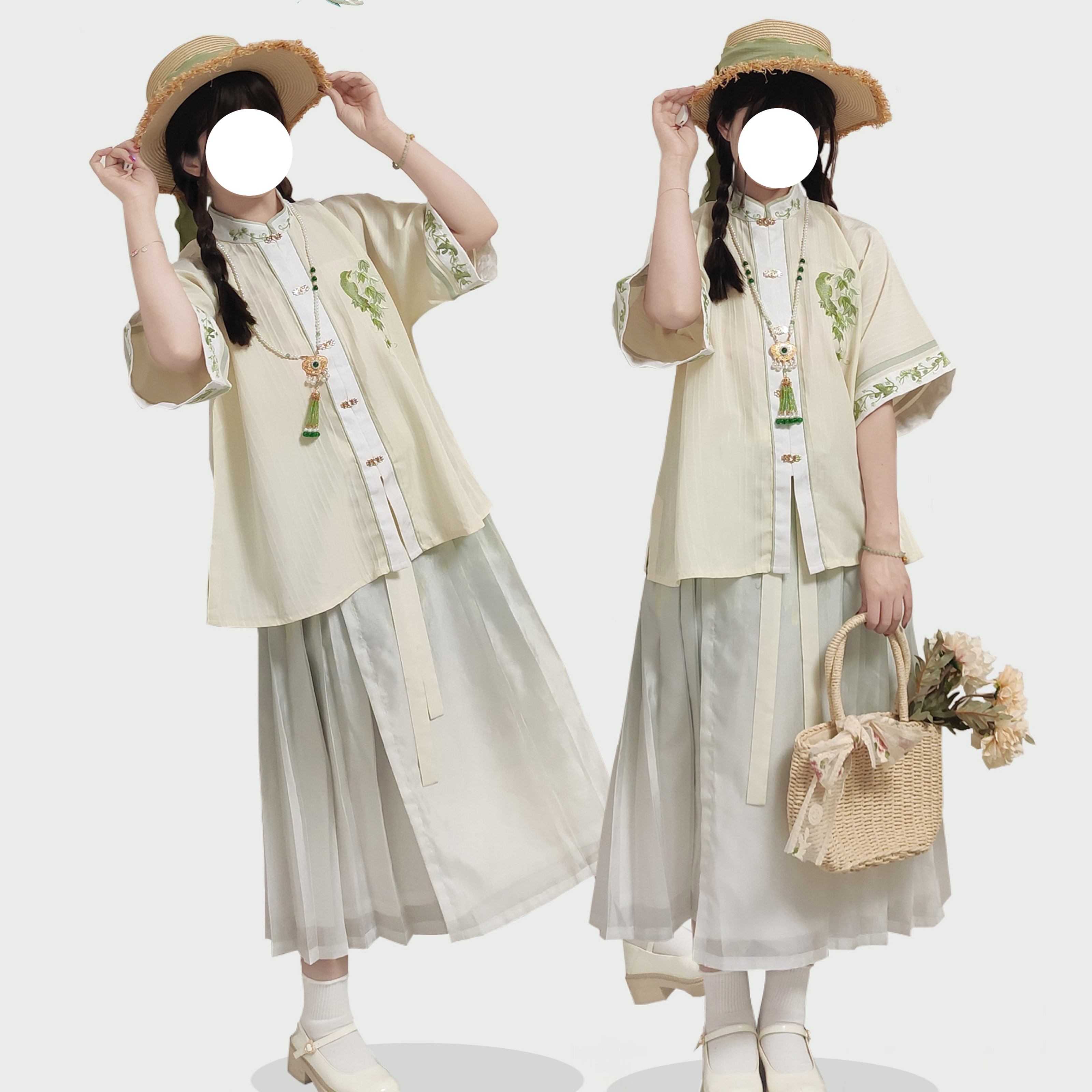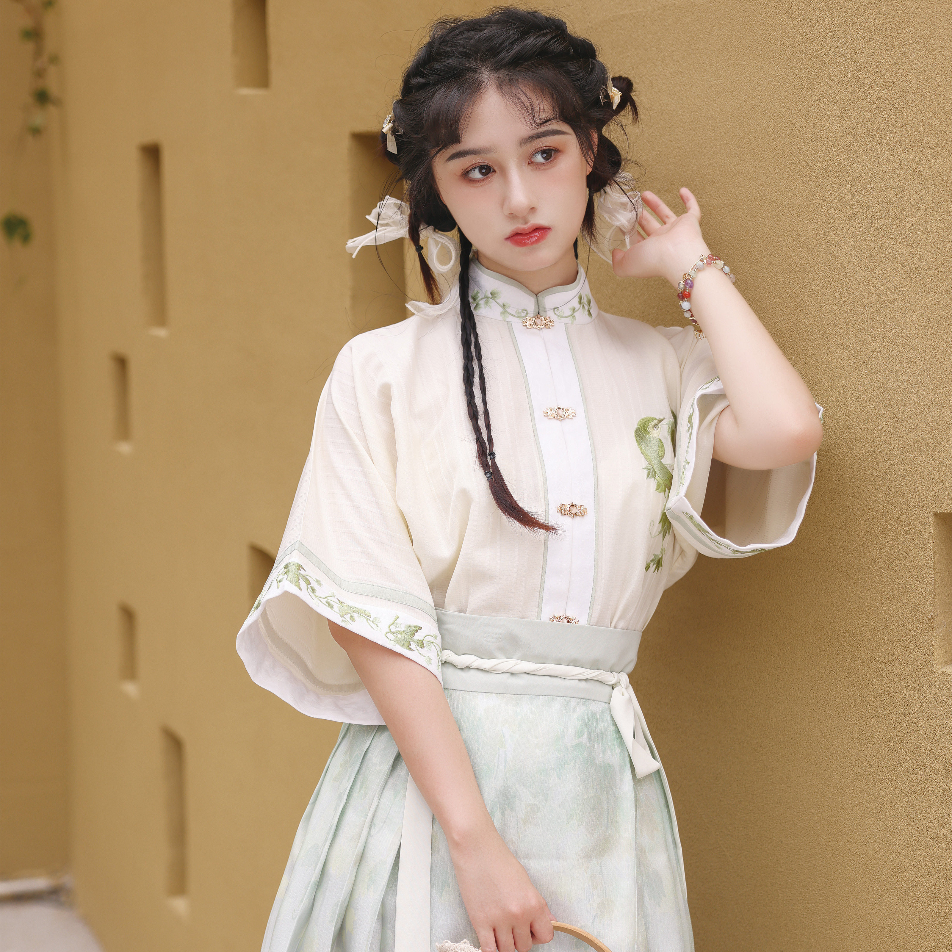 衫 百迭裙刺绣小清新日常 素竖领对襟短袖 花朝记|飞鸟|明制汉服元