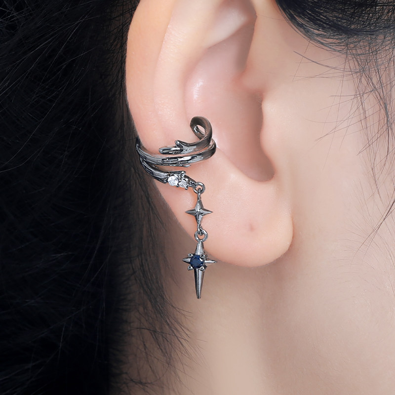 女耳骨夹 暗黑荆棘四芒星耳夹中性风无耳洞耳环小众设计酷潮个性
