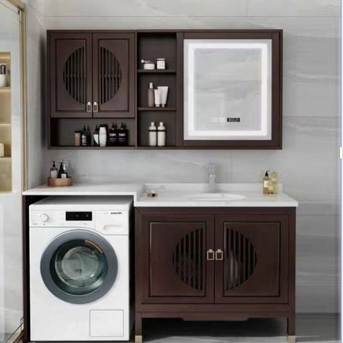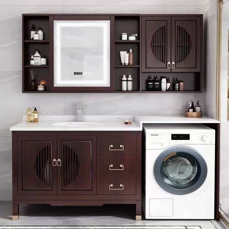 2024新品 实木卫浴洗脸台盆伴侣滚筒 定制浴室柜洗衣机组合柜新中式