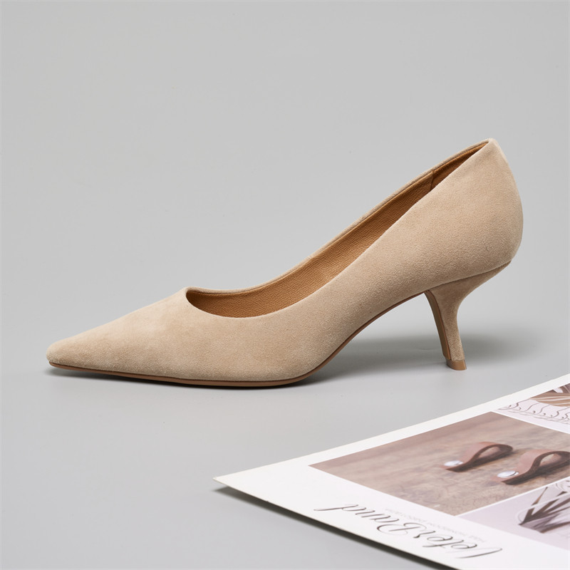 德芙琳法式 子女浅口尖头真鹿皮细跟不累脚2024年春季 新款 高跟单鞋