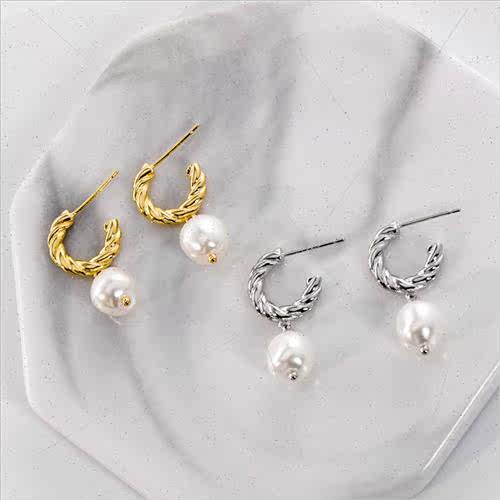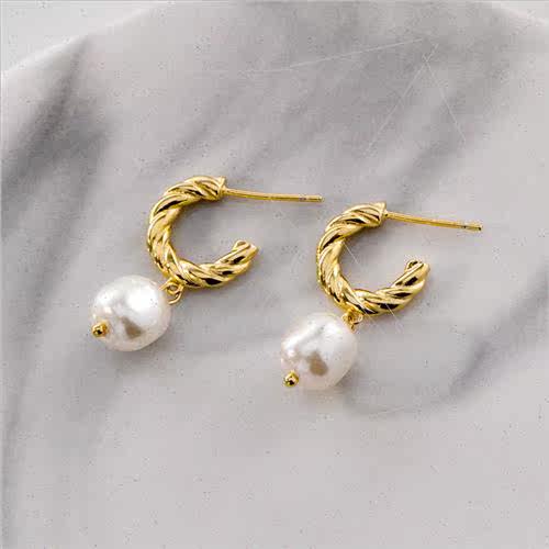 S925 Earrings French Pearl Premium Baroque Plated lver che由