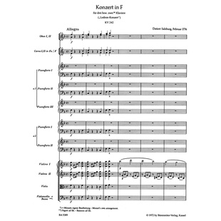 骑熊士原版 BA05389 zwei Mozart 伦敦协奏曲 Klaviere für F大调第7钢琴和乐队协奏曲KV242 drei bzw. Konzert 莫扎特 总谱由
