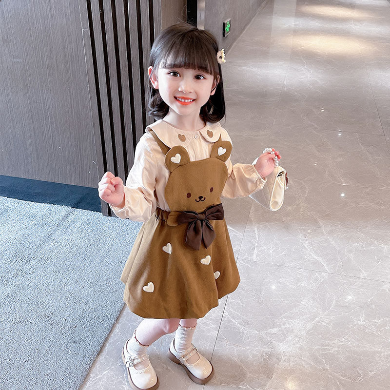 公主裙子女宝宝春季 背带裙 连衣裙洋气时髦儿童两件套装 女童春秋装