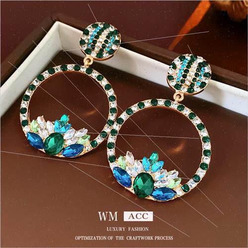 inlaid earrin lver colorful water drop circle needle diamond由