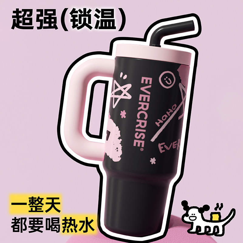 evercrise大口哈巨无霸保温杯女生高颜值吸管水杯水壶冰霸杯杯子