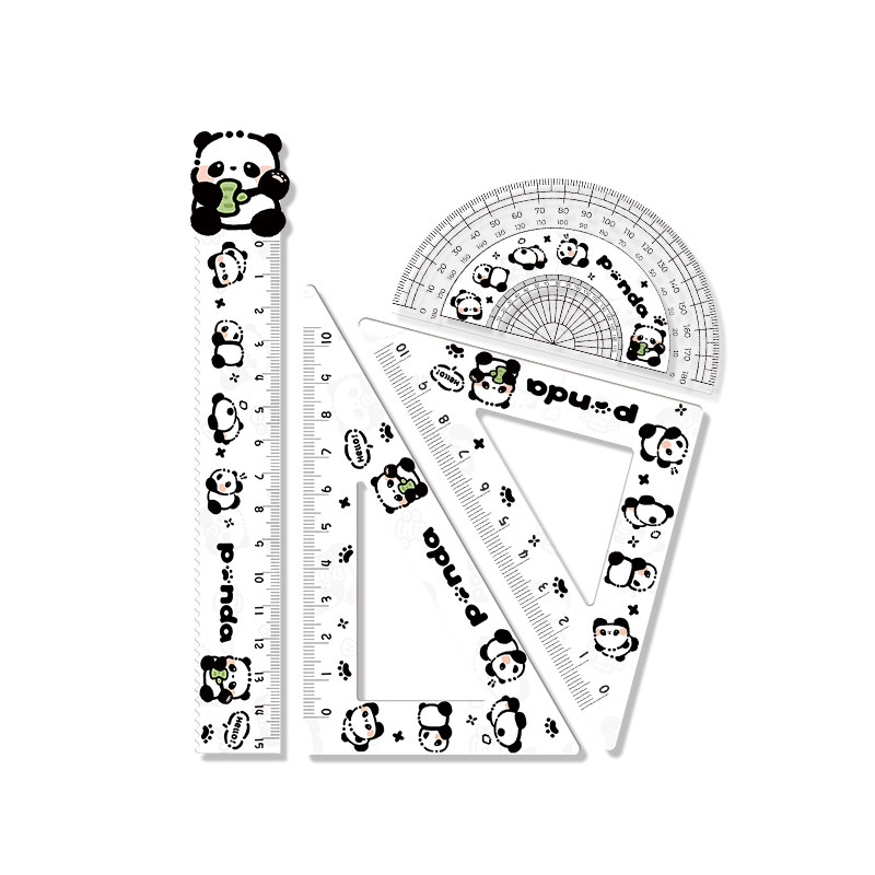 亚克力学生用品高颜值15厘米直尺三角尺半圆多功能 大熊猫尺子套装