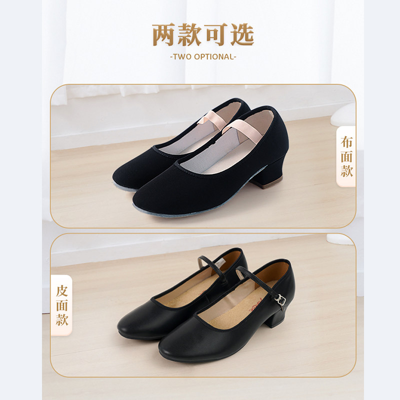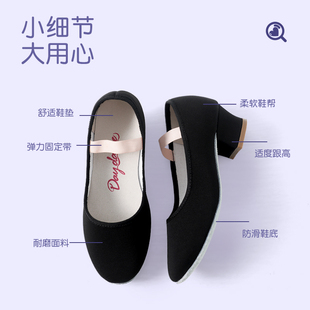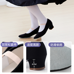 教师鞋 女北舞英皇芭蕾舞考级代表性黑色带跟性格舞鞋 艾舞戈舞蹈鞋由